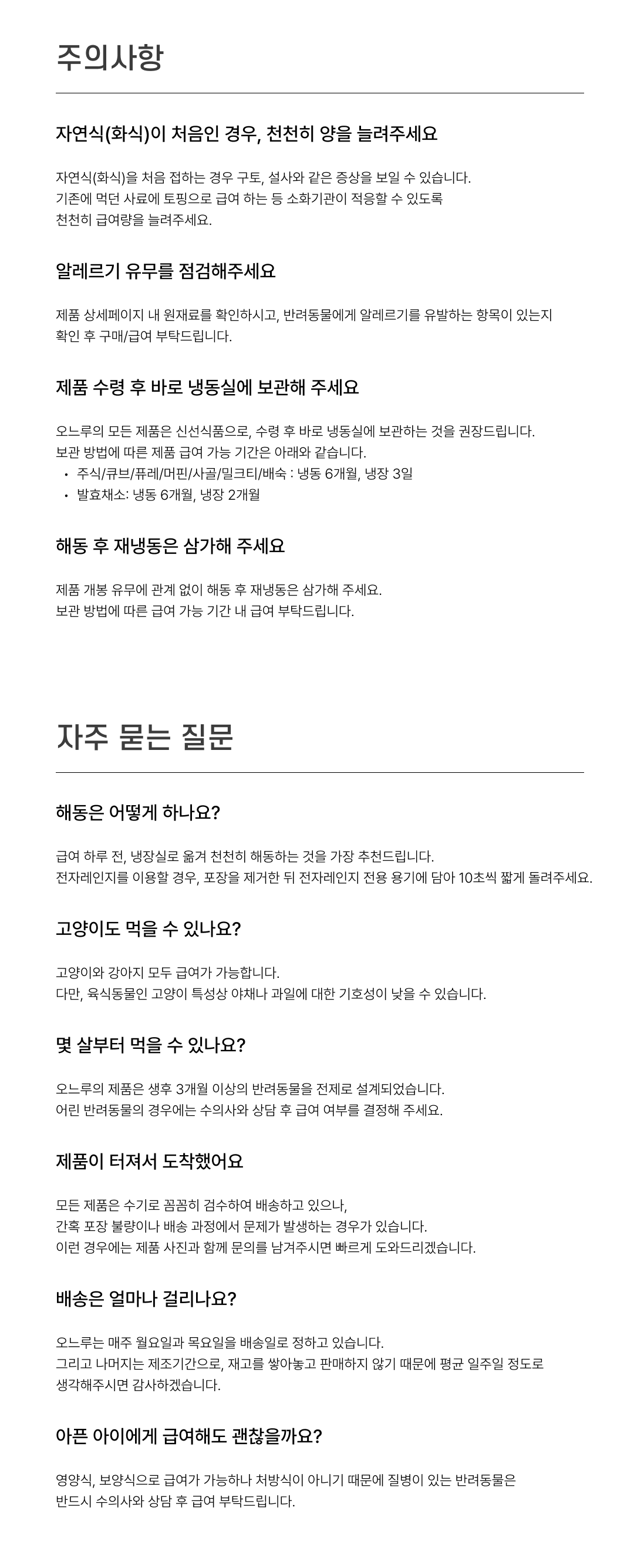 - 오느루의 모든 제품은 재판매가 불가한 상품의 특성상, 단순 변심, 주문착오 시 교환 및 반품이 어려운 점 양해 부탁드립니다. 상품에 따라 조금씩 맛이 다를 수 있으며, 개인의 기호에 따라 같은 상품도 다르게 느끼실 수 있습니다