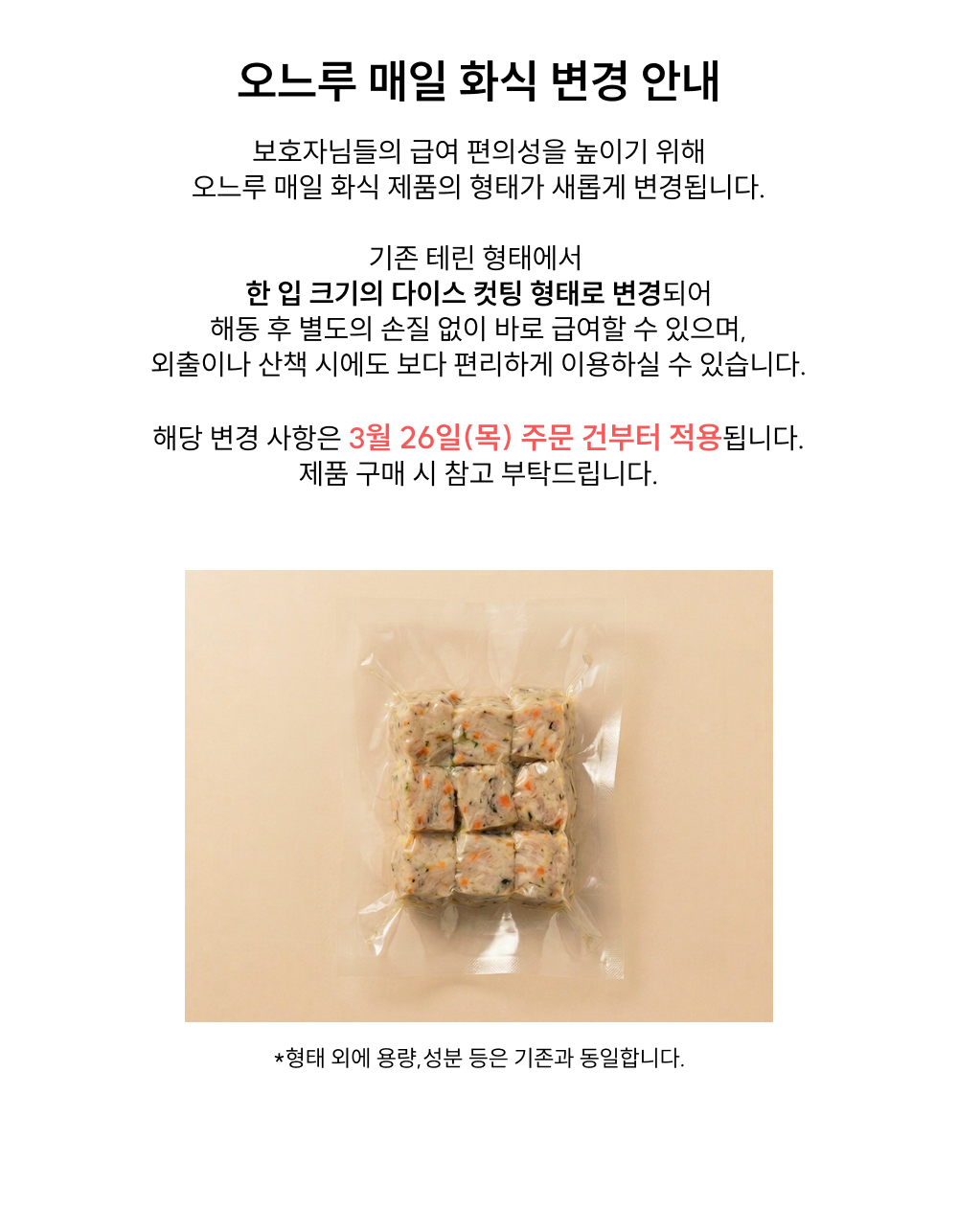 - 오느루의 모든 제품은 재판매가 불가한 상품의 특성상, 단순 변심, 주문착오 시 교환 및 반품이 어려운 점 양해 부탁드립니다. 상품에 따라 조금씩 맛이 다를 수 있으며, 개인의 기호에 따라 같은 상품도 다르게 느끼실 수 있습니다